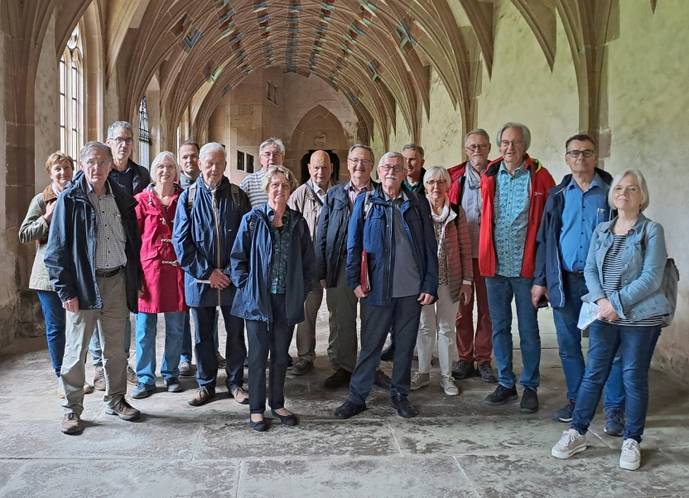 Der Männerkreis veranstaltete am 29. Juli 2023 mit 19 Teilnehmern unter der Leitung von Gustav F. Trilsbach einen ganztägigen Ausflug zum Kloster Maulbronn. Das Kloster wurde im 12. Jahrhundert von Zisterziensern gegründet, die den Komplex im romanischen Stil errichteten. Der Historiker Michael Schirpf aus dem Männerkreis übernahm die fachkundige Führung sowohl durch die Klosteranlage als auch über das Klostergelände und konnte die Teilnehmer mit seinen Ausführungen begeistern.