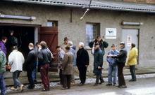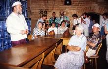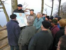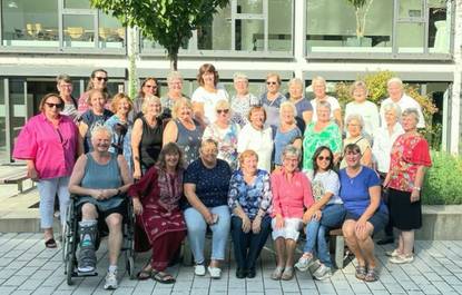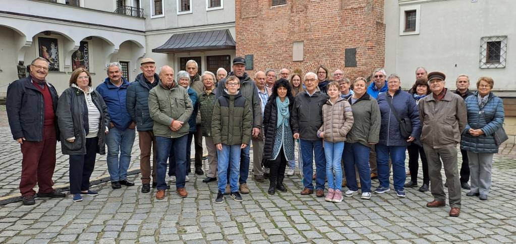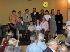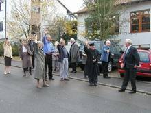 30 Gäste aus den vier Partnerschaftsdörfern kommen mit Pfr. Dietz zur Einweihung des Gemeindehauses nach Lützelsachsen.