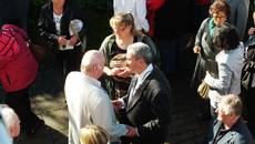 Der Festgottesdienst am Sonntag in der vollbesetzten Lützelsachsener Kirche wurde vom Schönfelder Singkreis unter der Leitung von Lukasz Popialkiewicz (Stettin) und unserem Organisten Herrn H.-J. Braunstein musikalisch gestaltet. Pfarrer Thomas Dietz (Schönfeld) gab in seiner Predigt der Dankbarkeit für 83 Treffen in 9131 Tagen (25 Jahre incl. 6 Schalttagen) Partnerschaft Ausdruck. Man fährt nach so vielen Begegnungen nicht nach Ost- oder West-Deutschland, sondern ganz selbstverständlich nach Schönfeld oder Lützelsachsen.